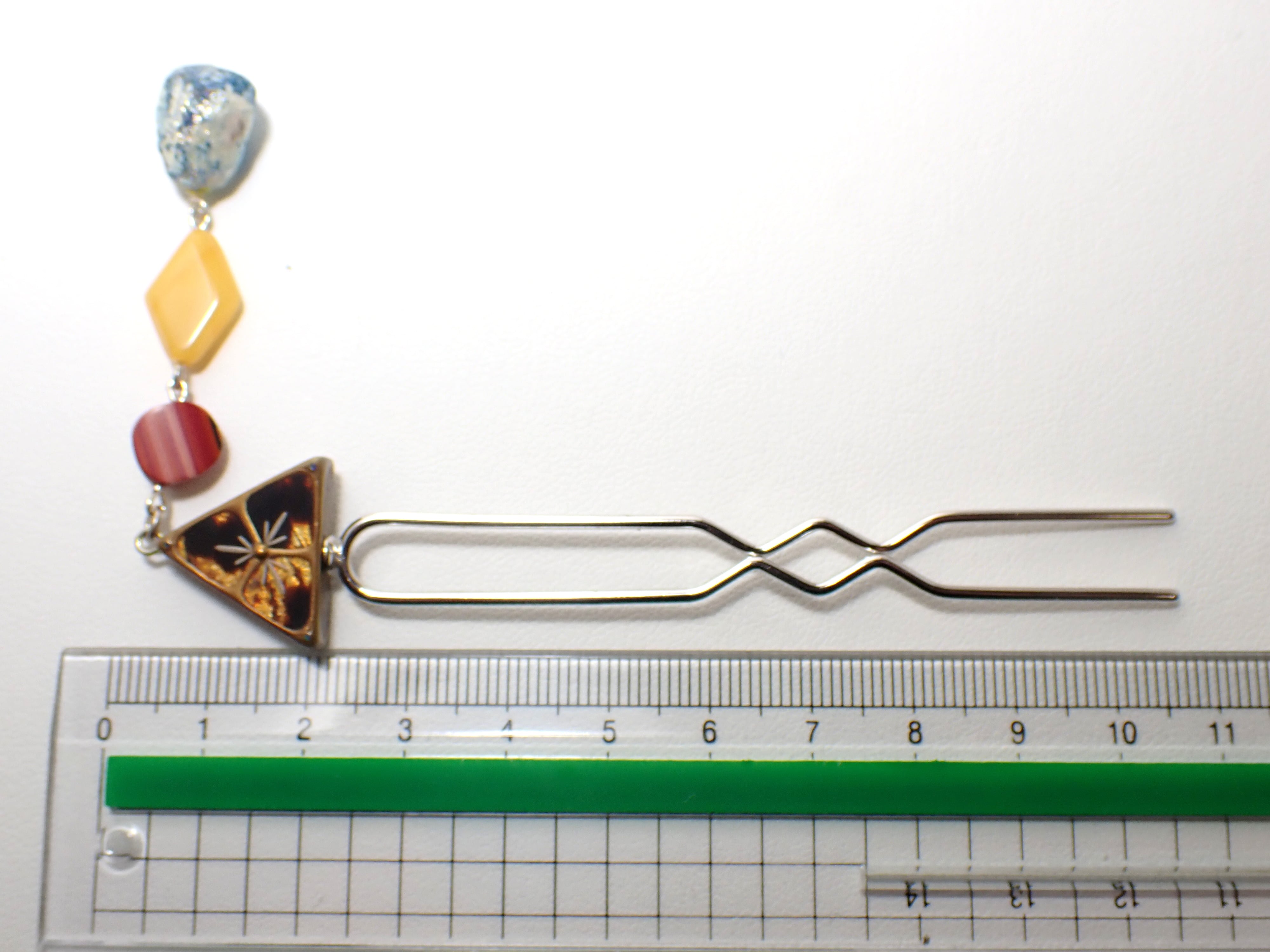 This hairpin is made using a variety of materials.