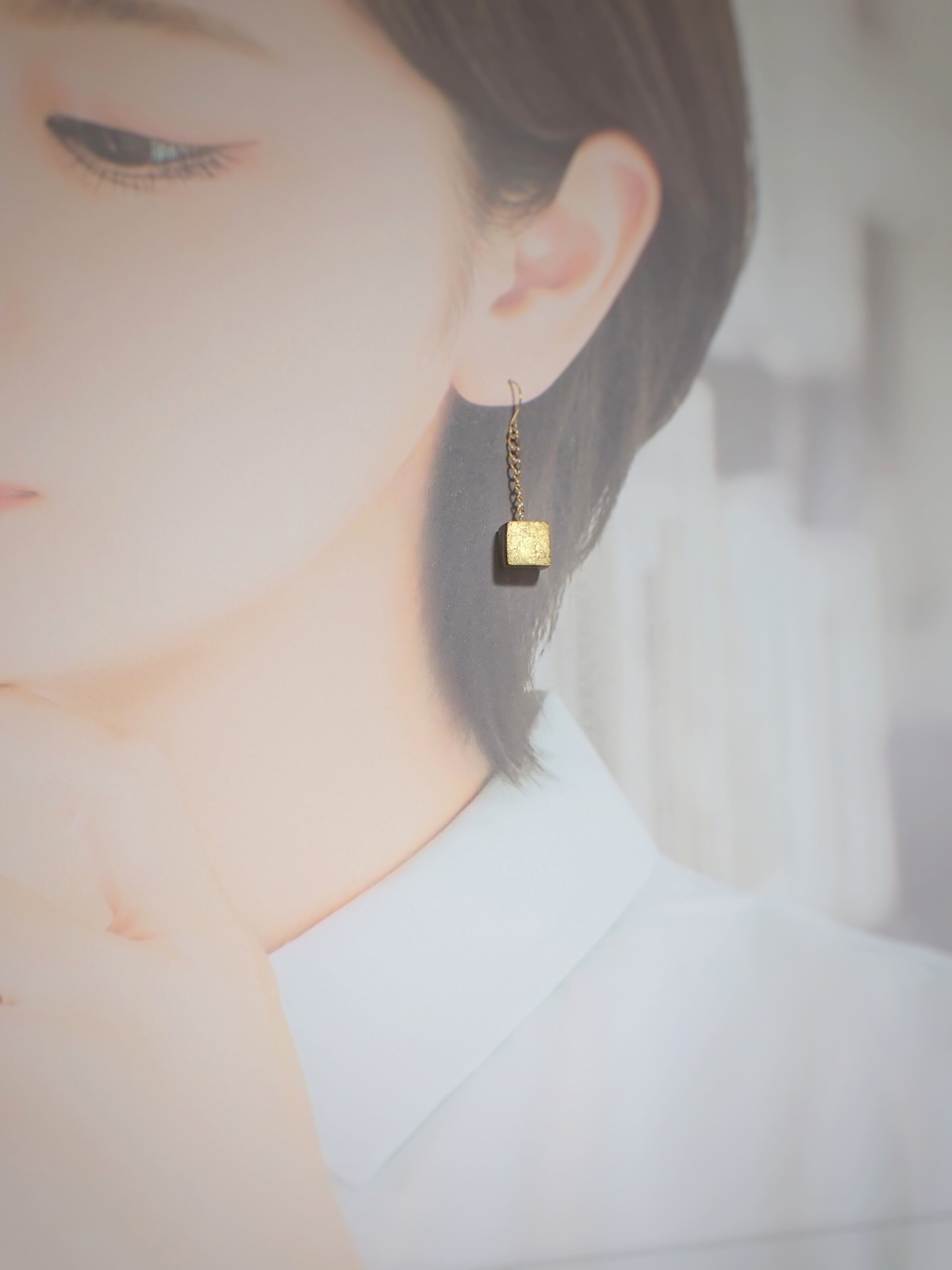 These earrings feature maki-e (lacquerware) on a block of lacquer that has been applied 200 times over the course of a year.
