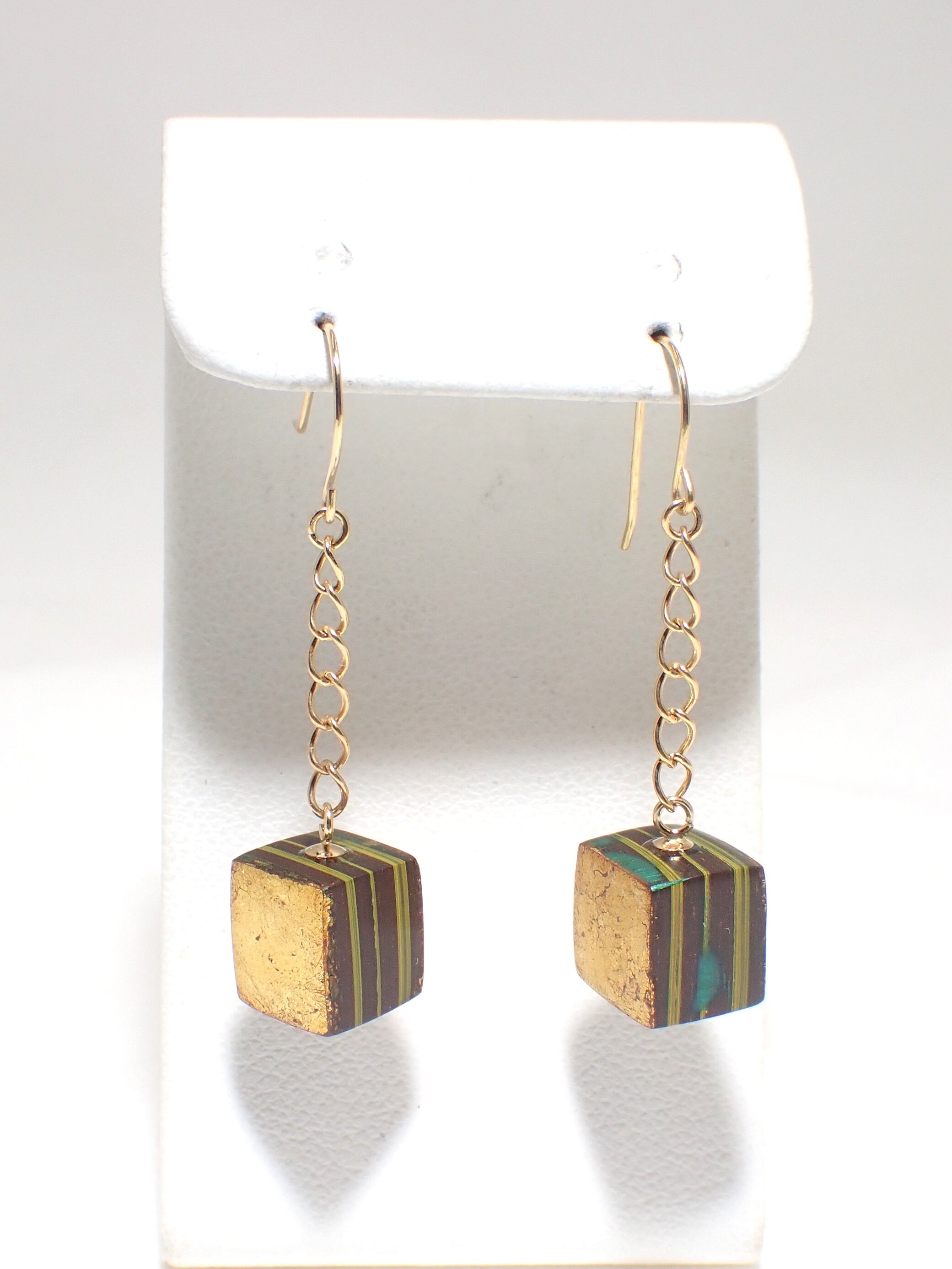 The contrast between the subdued lacquer and the gold leaf is beautiful when the earrings sway.