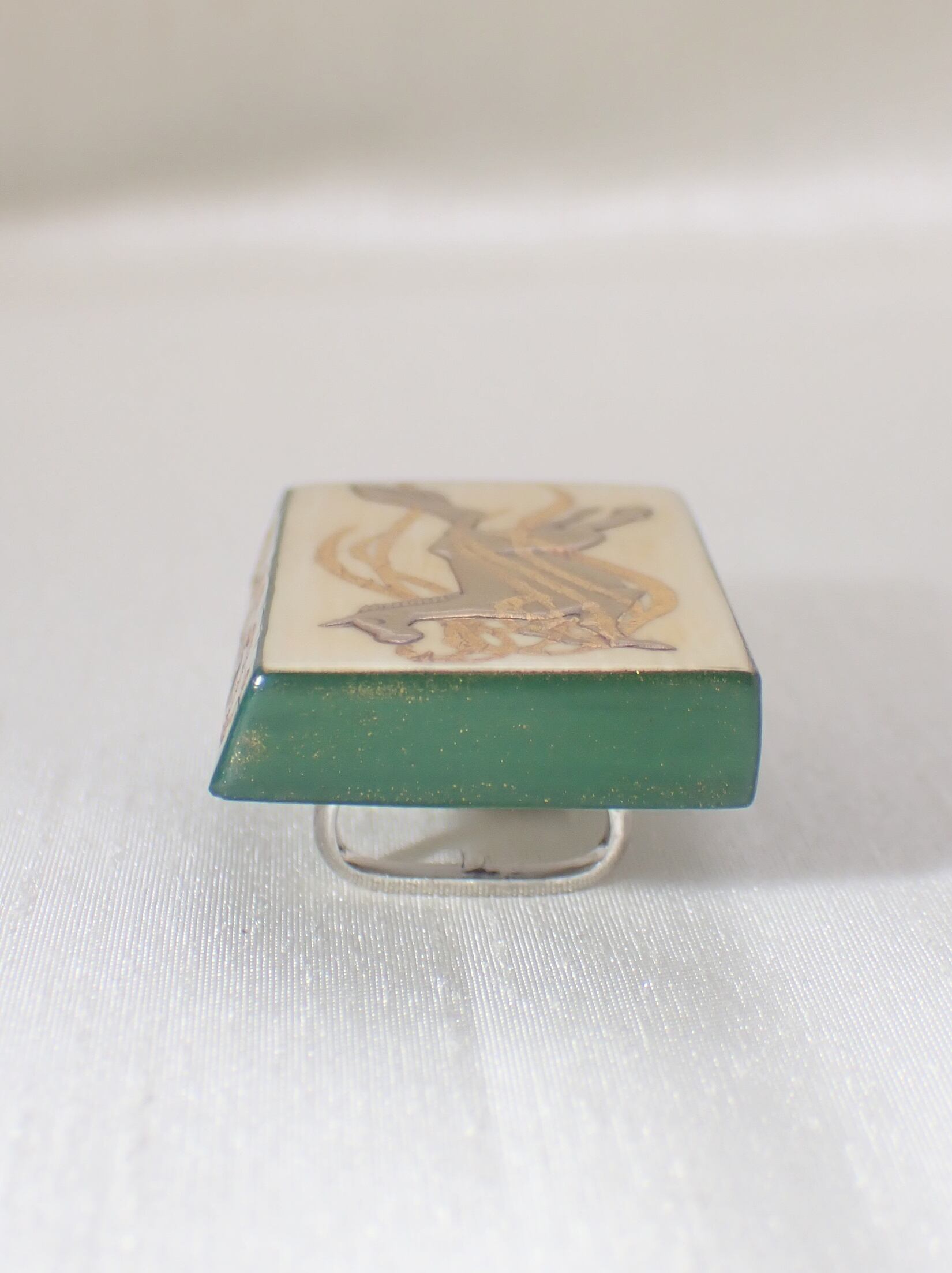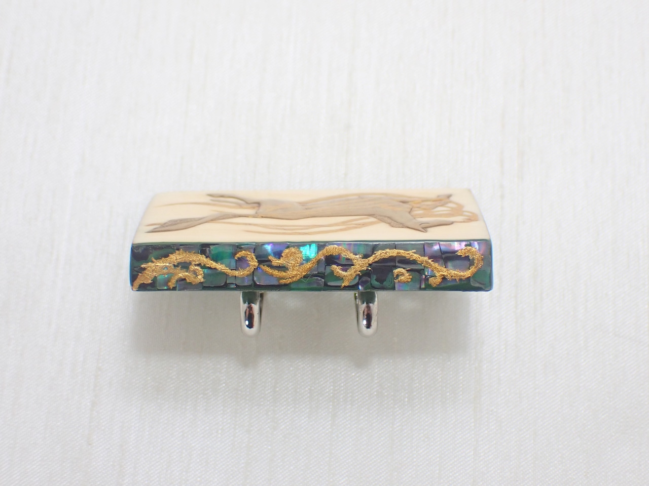 蒔絵帯留め【颿】/ マンモス牙・合金