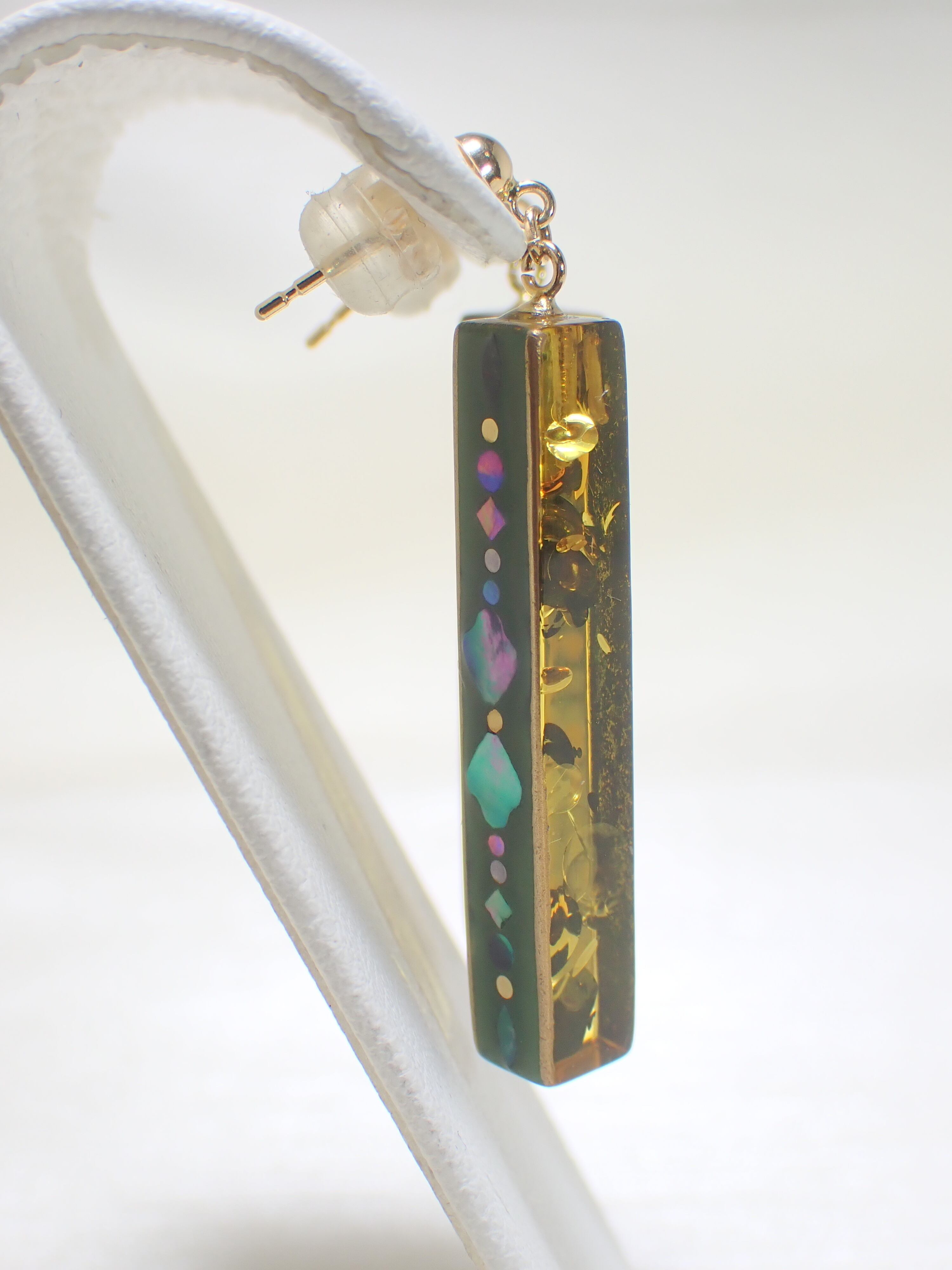 蒔絵ピアス【光の柱】/ 琥珀、K18