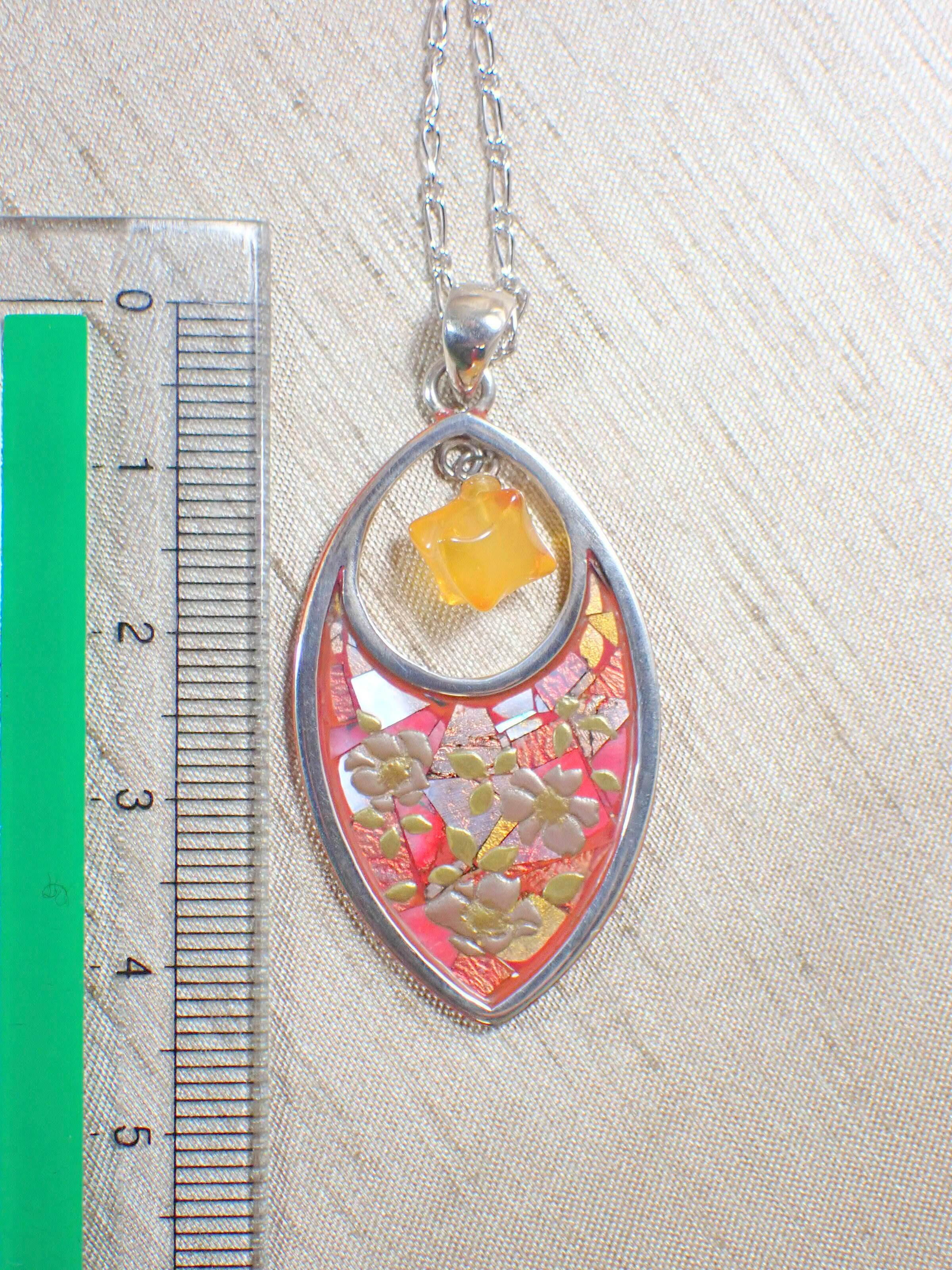 大きさ:46mm×22mm×7mm(ペンダント部分のおよその縦×横×厚み、琥珀の厚みを含む)