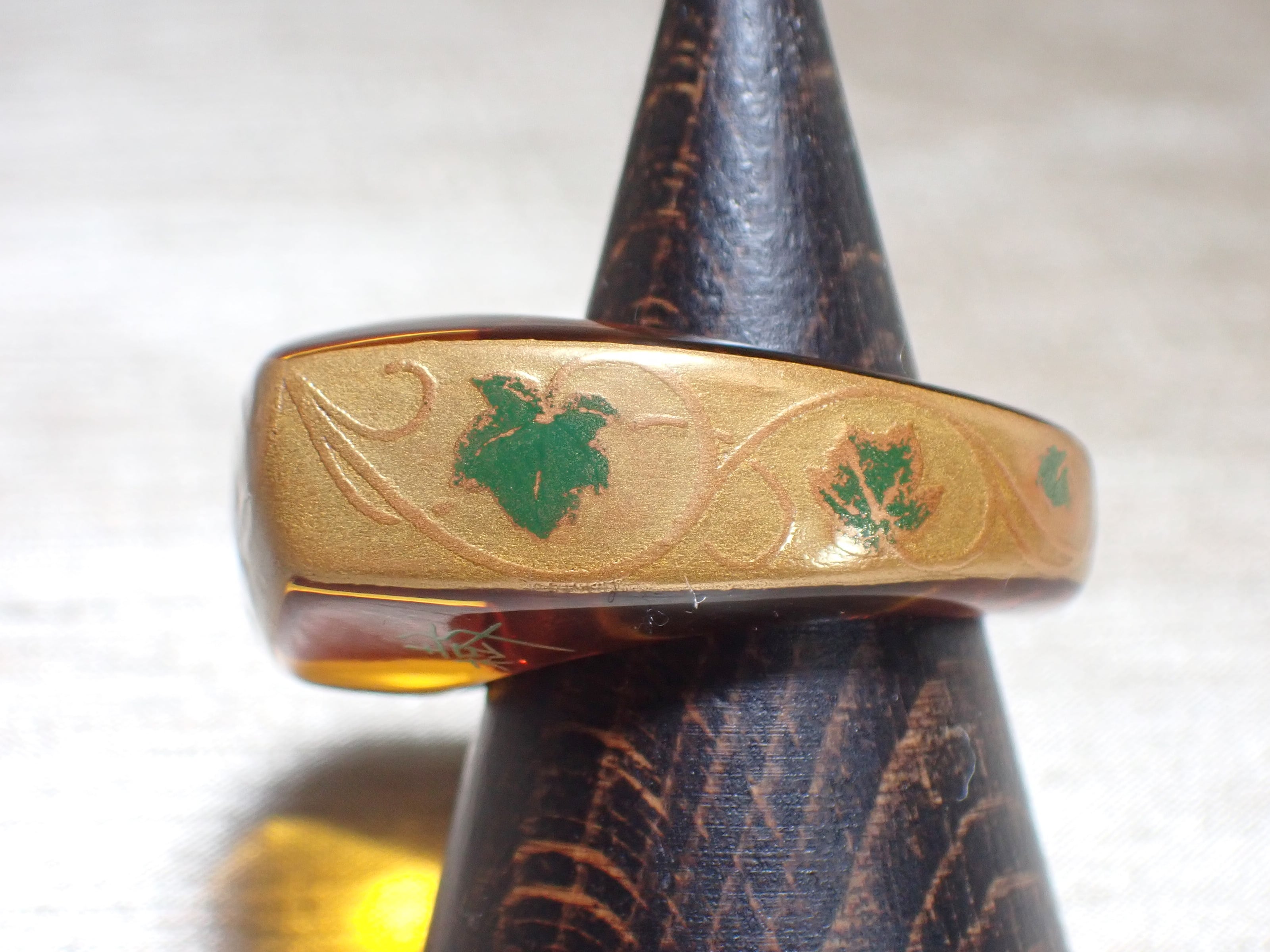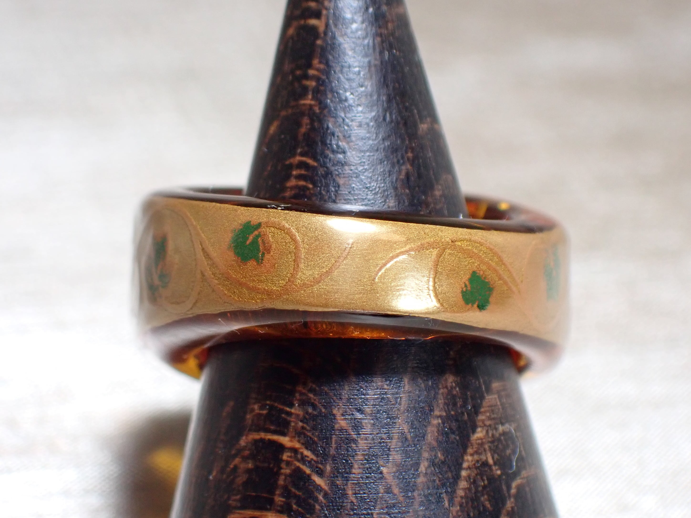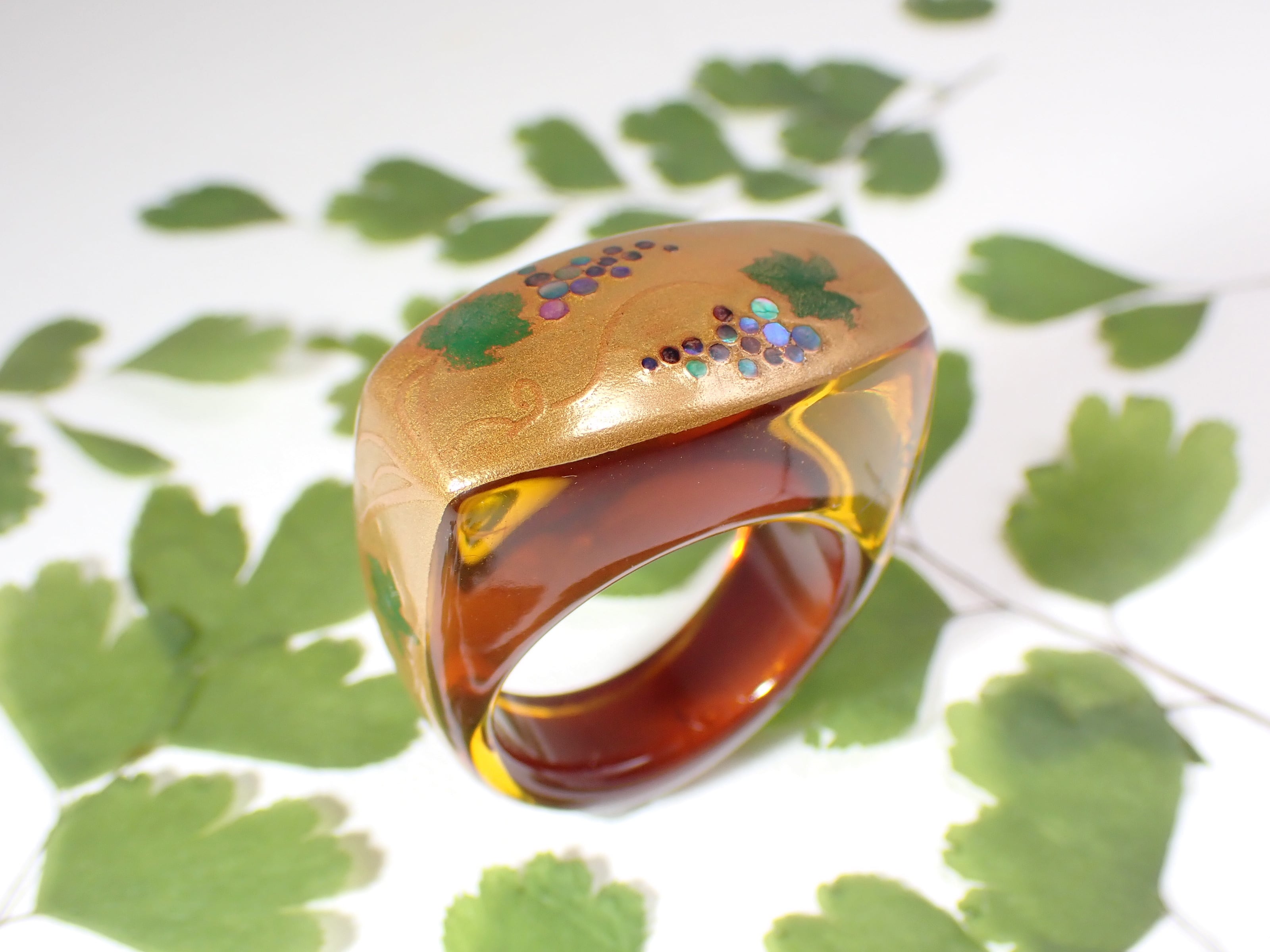 リトアニア産の コニャック系の琥珀に蒔絵をしたリングです。